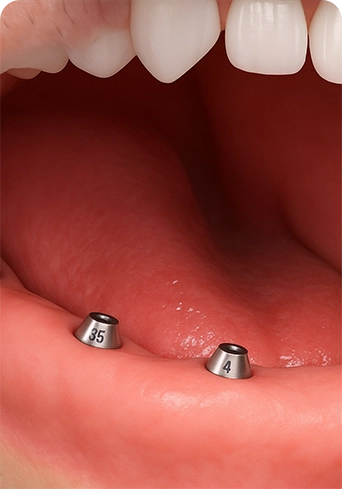 Die Implantate aus biokompatiblem Titan werden fest im Kieferknochen verankert und bieten eine stabile Grundlage.