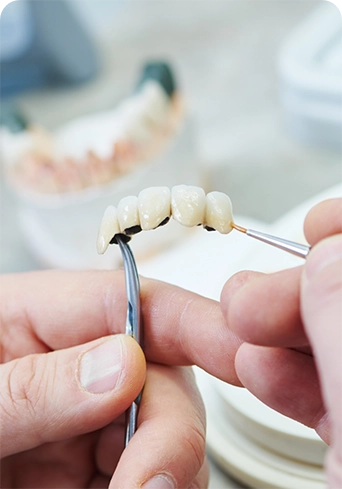 Für die Prothesen verwenden wir hochwertige Metall-Porzellan-Kronen, die ein natürliches Erscheinungsbild maximalen Komfort garantieren.