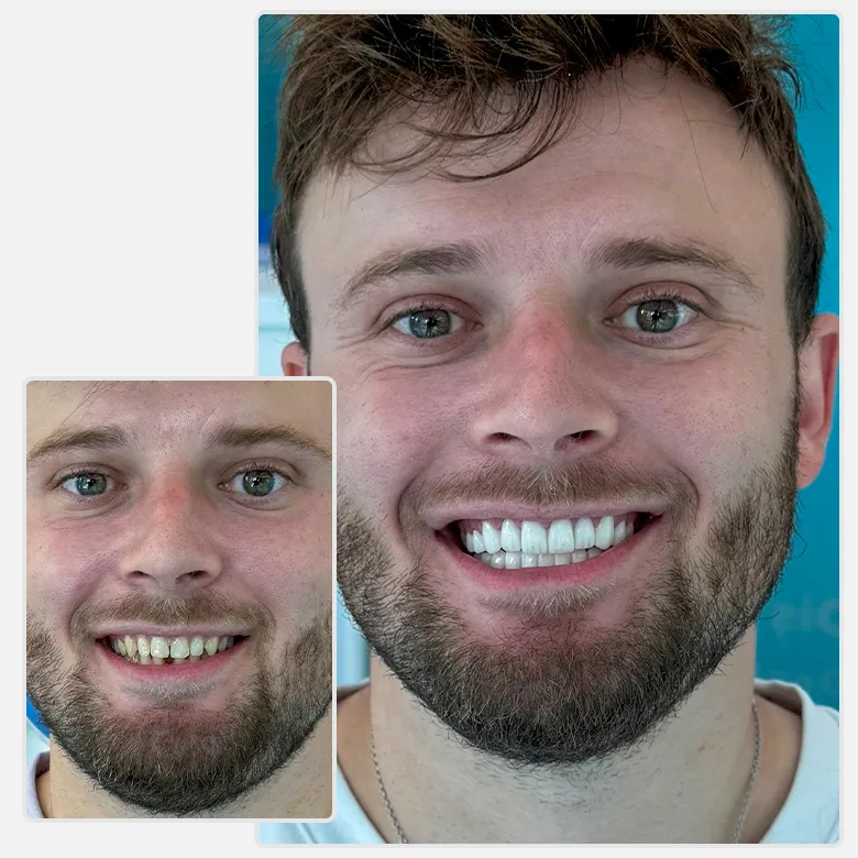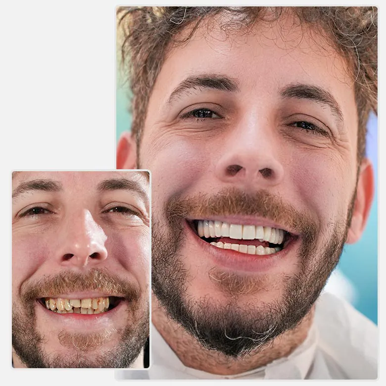Sie ersetzen den sichtbaren Teil des Zahns und werden individuell angepasst, um sich perfekt in Ihr Gebiss einzufügen - sodass sie nicht von echten Zähnen zu unterscheiden ist.